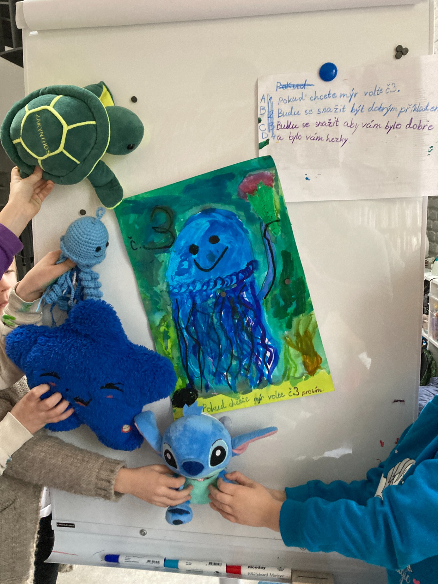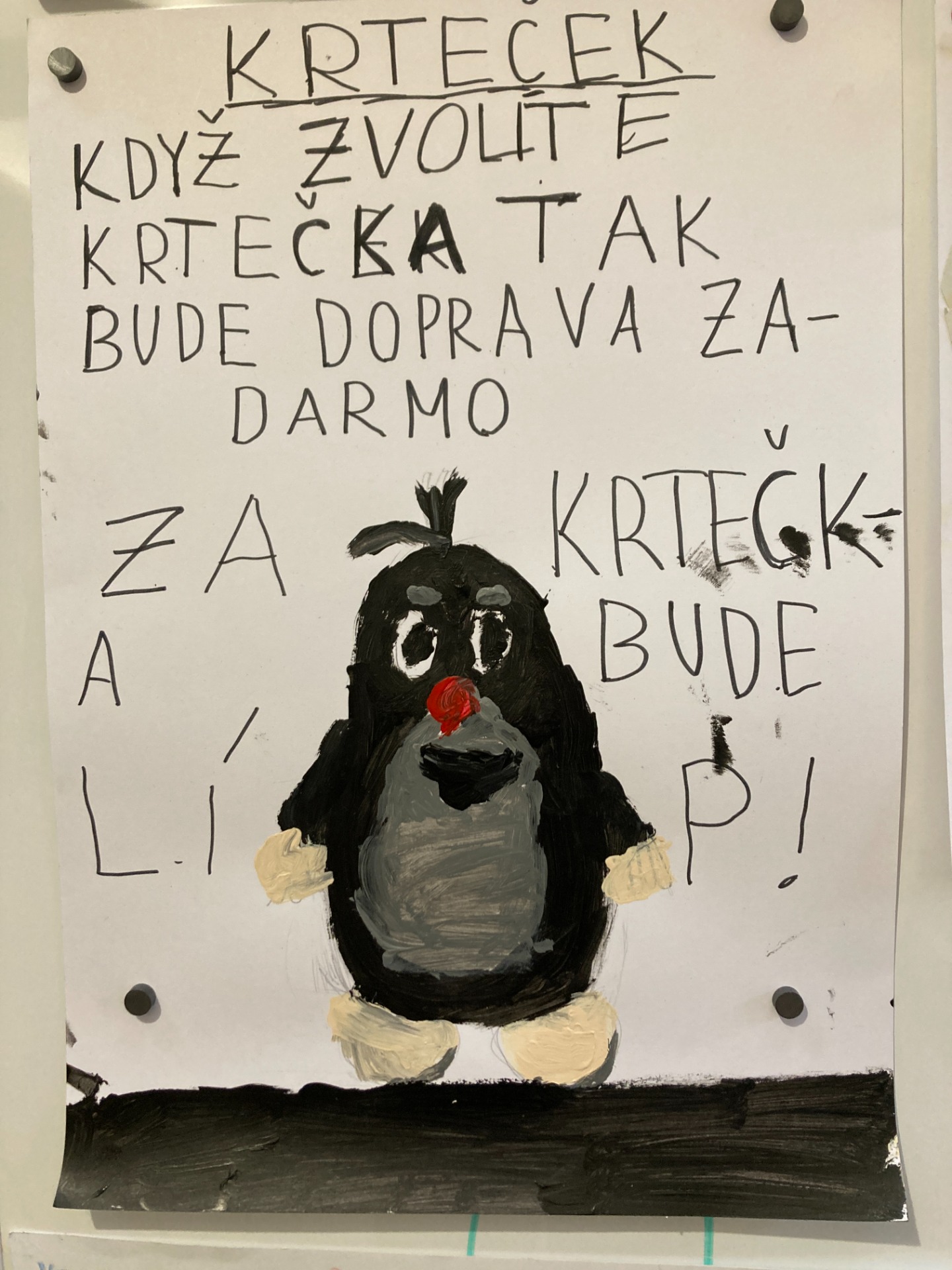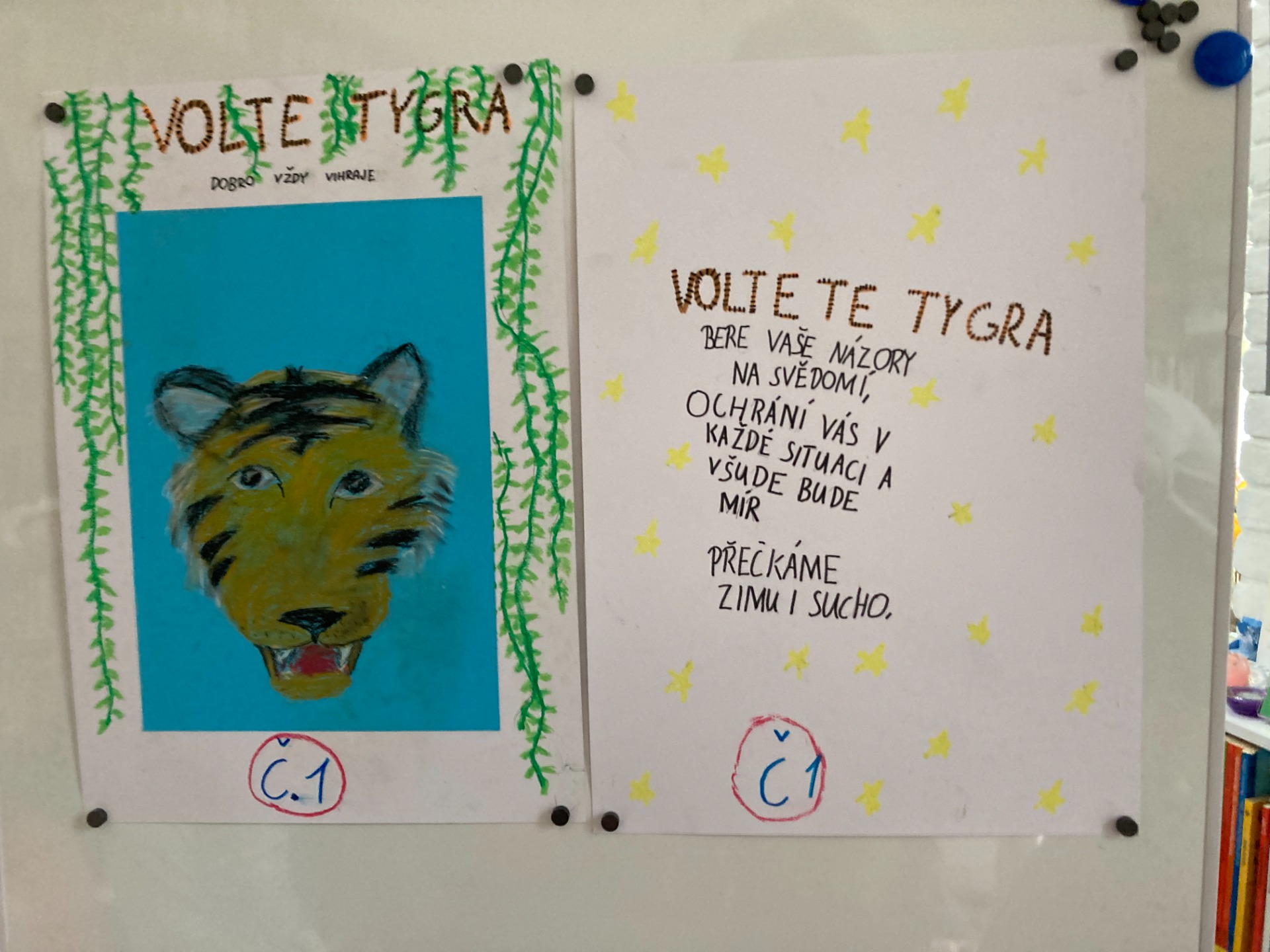 Ukázka předvolebních plakátů, které vznikly ve Statenicích v rámci workshopů Volte zvířata